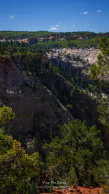 Another View from Cable Mountain shows the Echo Canyon and the Observation Point Trail. The East Rim Trail continues through the Echo Canyon and afterwards joins the Observation Point Trail. If you have time, you have the chance to hike the Observation Point, the highest point inside Zion Canyon.